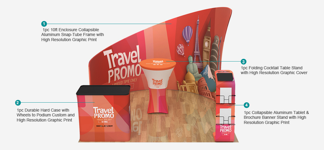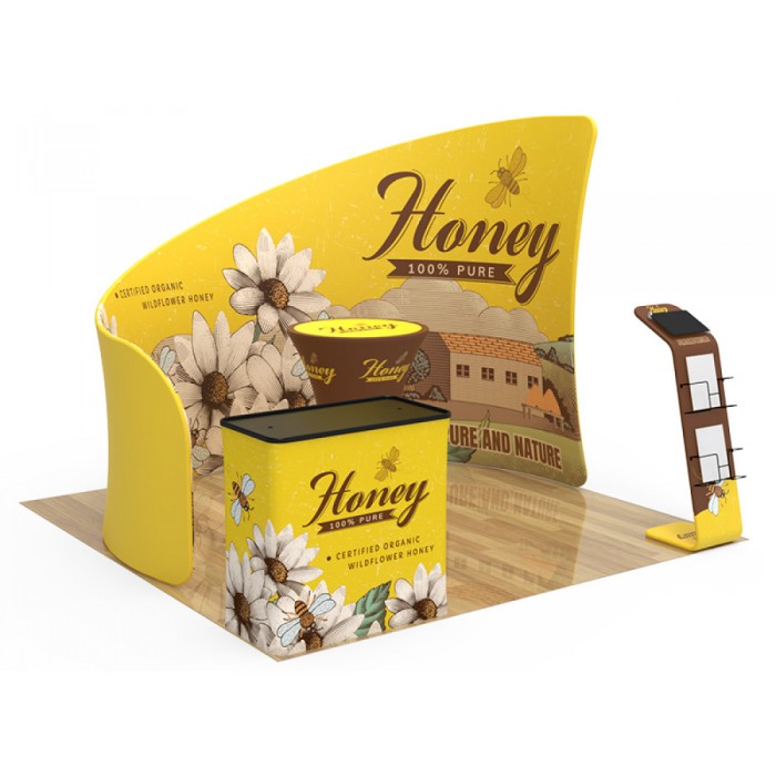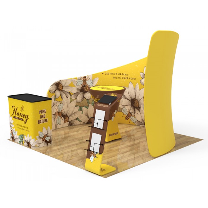 Designed to make a lasting impression, our custom-built booths combine innovative design, high-quality materials, and attention-grabbing features to help you stand out from the crowd. Whether you're looking to showcase new products, generate leads, or simply create a memorable experience for your visitors, our 10x10 booths are the perfect solution. Our aluminum-framed booths are manufactured to be easily transported and dismantled, offering an efficient option for advertising at any event.