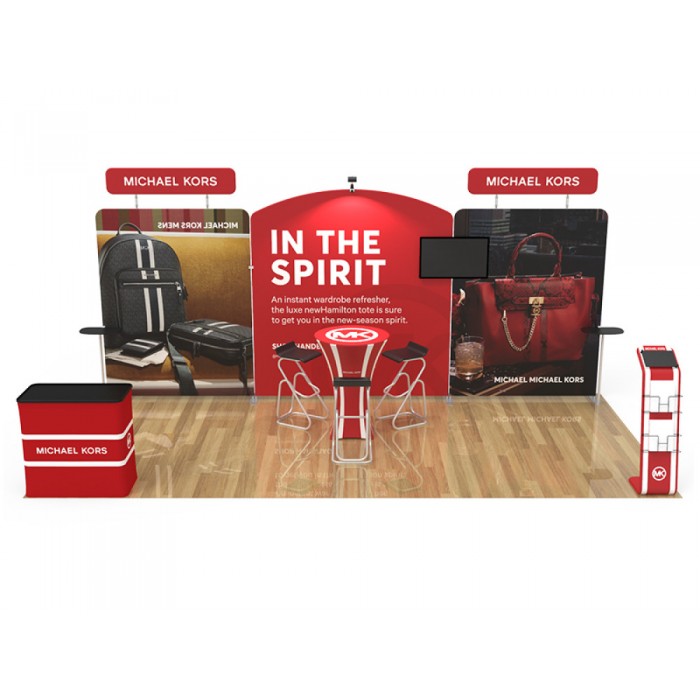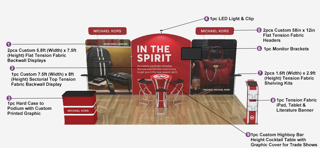Featuring 2 custom flat tension fabric backwall displays, 2 custom flat