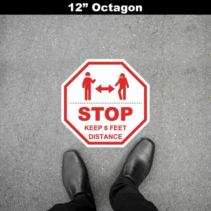 Social Distancing Floor Decal - STOP Keep 6 Feet Distance Octagon