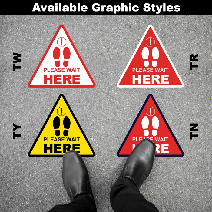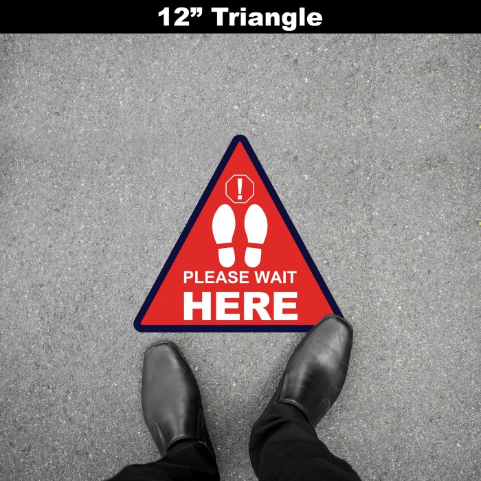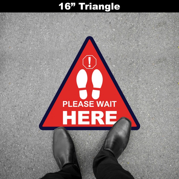 New Social Distancing Floor Decal - Please Wait Here Triangle